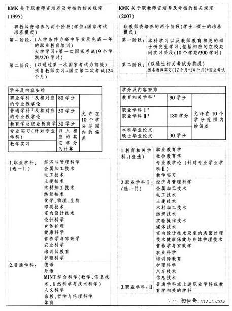 在1999年博洛尼亚(Bologna)学制改革之前,在德国没有学士和硕士学位划分,大学生获得的第一个学位是Diplom或Magister(国际上公认为硕士),平均学习时间长达6年。当时的职教师资是通过“学位+国家考试”模式进行培养的。随着欧盟一体化进程的启动,德国参与了旨在建立欧洲统一的高教体系、促进欧洲高校统一化和国际化的博洛尼亚学制改革,职教师资培养模式也从“学位+国家考试”旧模式逐渐向“学士-硕士”培养新模式过渡。与前三个阶段根据学生职业能力发展阶段确定教师培养内容不同,此阶段职教师资培养开始关注在教师职业生涯发展的大框架里,进行教育学的专业化发展。确定学习内容的基础是职教师资的能力发展阶段与工作过程分析,职教师资的角色定位转变为“专业教学论者”。